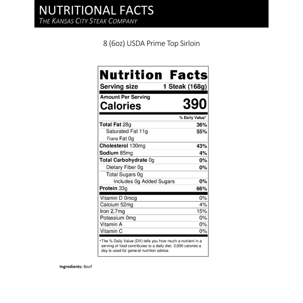 - 8 (6 oz) USDA Prime Top Sirloin Steaks